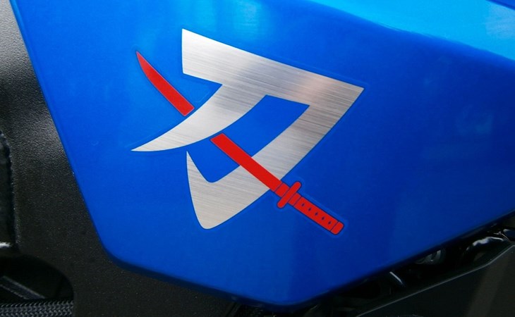 - Das Chassis-Konzept der KATANA ist auf Agilität ausgelegt - für Landstraßenfahrten und City-Touren. Rückgrat des superleichten und kompakten Packages ist ein Twin-Spar-Aluminiumrahmen, dessen Layout Dir eine satte Straßenlage mit bestem Handling ermöglicht. Informiert in jedem Augenblick: dank einer Vielzahl von Fahrt- und Fahrzeugdaten im kompakten Layout des LCD-Kombiinstruments. Mit bernsteinfarbener Hintergrundbeleuchtung für optimalen Kontrast. Und LED-Anzeigen für wichtige Funktionen an den Flanken des Displays. Unifarben und matte Oberflächen kommunizieren edle Wertigkeit, während die Gabel in Gold und die Schwinge in Grau Akzente setzen.