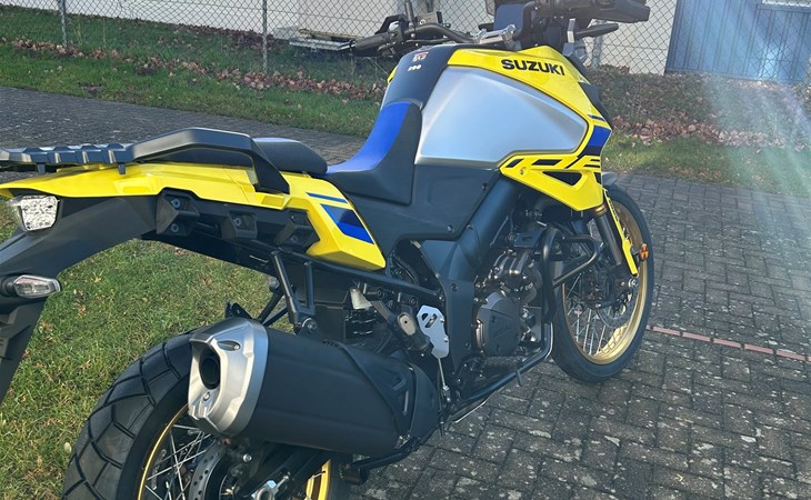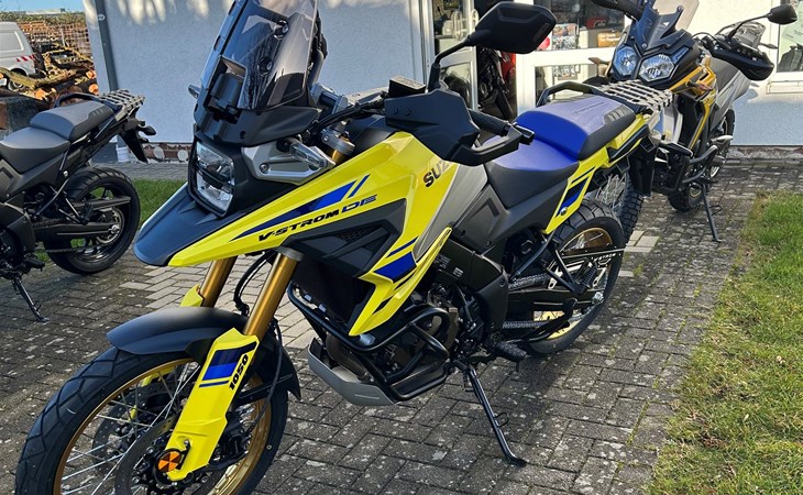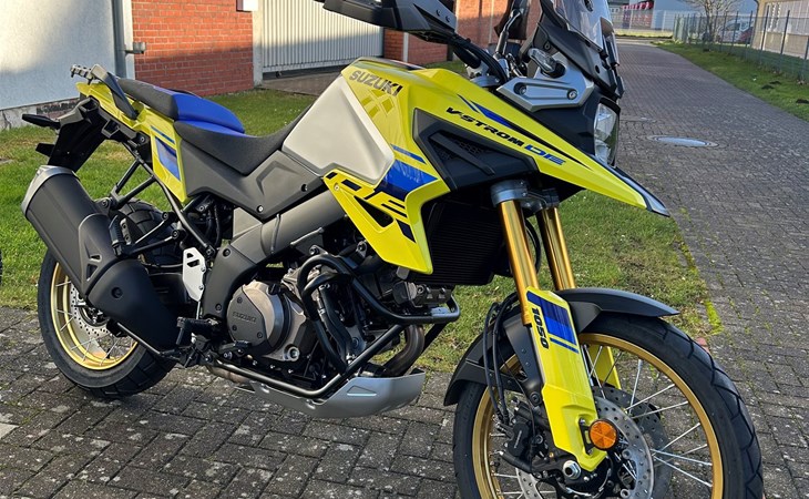Sichern Sie sich jetzt unseren topgepflegten Vorführer: Die Suzuki V-Strom 1050DE in auffälligem Gelb für nur 13.315 Euro**, inklusive hochwertigem Aluminium-Kettenschutz!