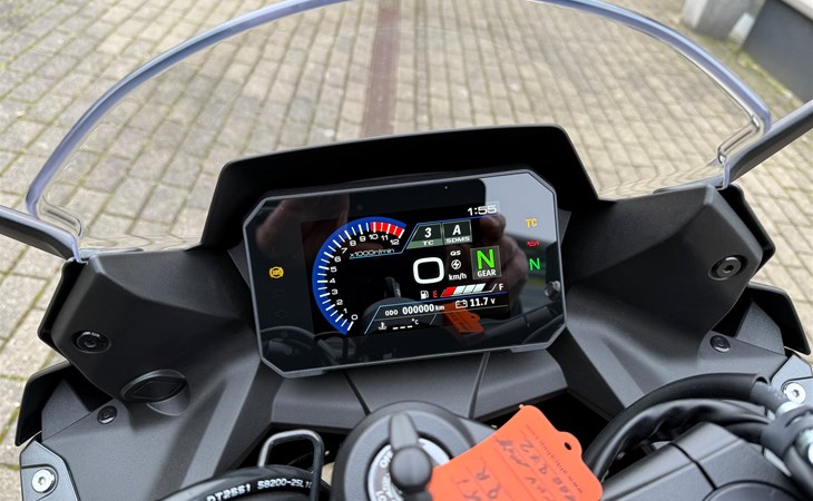 Stell dir ein R-Cockpit vor, das all deine Erwartungen übertrifft: Der Lenker liegt perfekt in der Hand, die sportliche Sitzposition passt ideal und das vollfarbige 5" TFT-Display liefert dir alle technischen Informationen klar und übersichtlich. Klar, übersichtlich und mit einem programmierbaren Schaltblitz als Highlight.