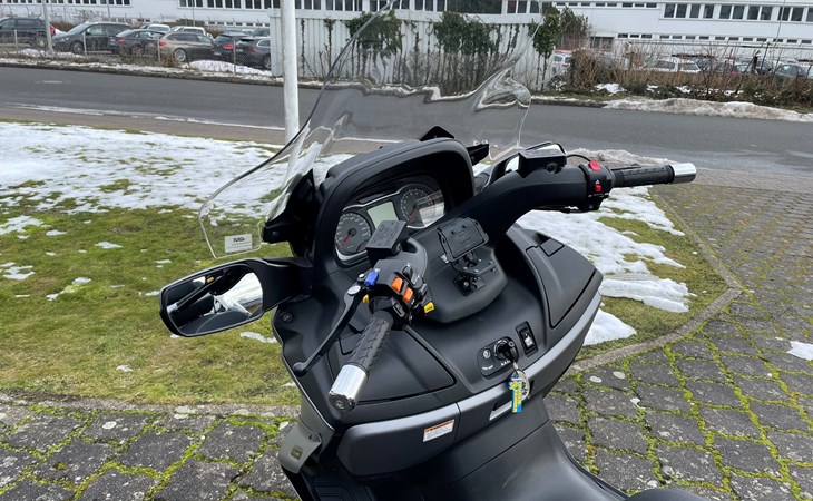 Der gebrauchte Suzuki Burgman 650 hat ABS, hat immer regelmäßig seine Inspektionen bekommen und ist sehr gepflegt. Er hat eine Beinschildverbreiterungen, das gibt noch mehr Windschutz. Das Windschild ist höhenverstellbar von Givi. Das Top Case ist org. von Suzuki und hat ein Rückenpolster. Der Roller hat einen reparierten Heckschaden. Tüv bekommt er neu.