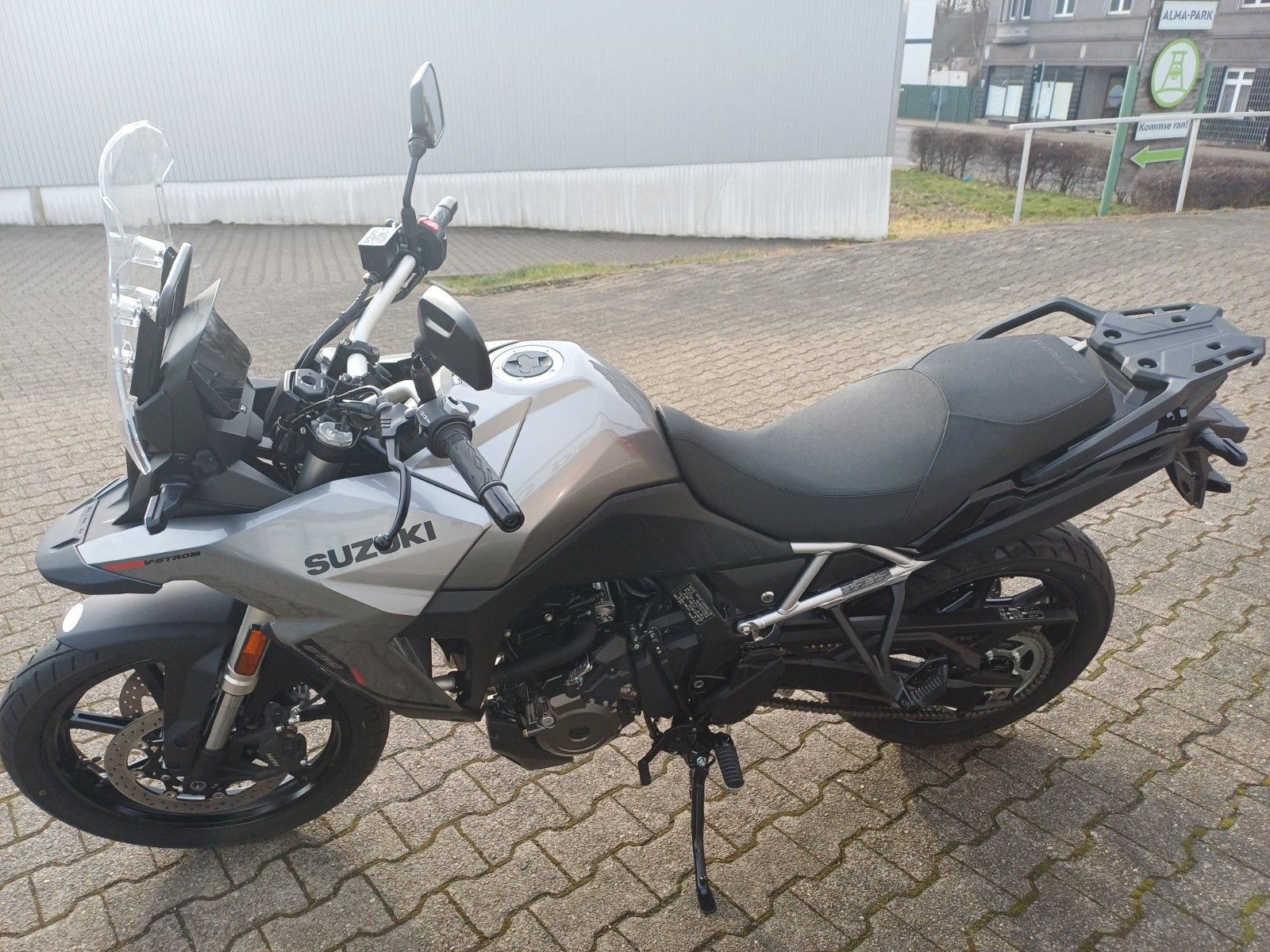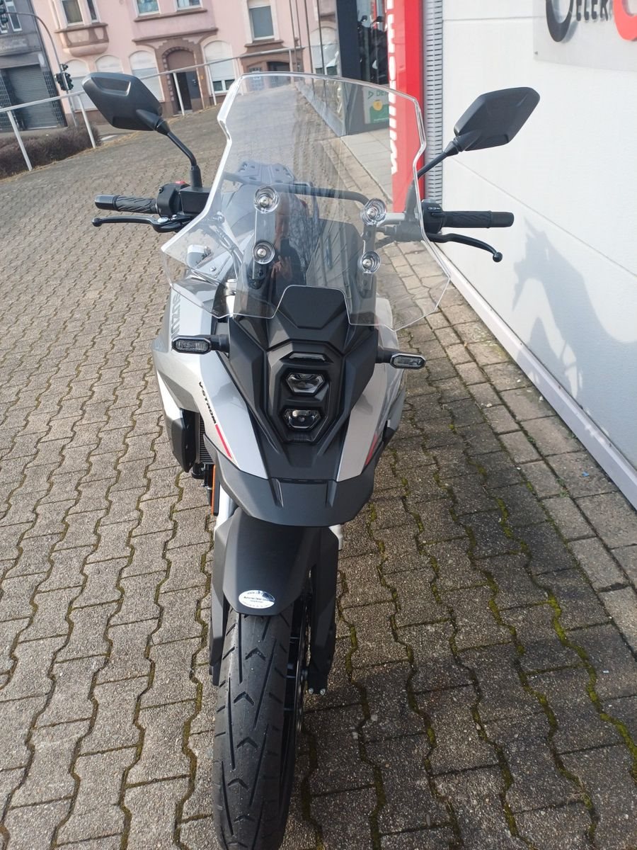 Die V-Strom 800 begleitet Dich bei allen Deinen Reiseabenteuern nah und fern. Mit überragendem Komfort, einem spurstabilen Fahrwerk und dem kraftvollen Zweizylinderaggregat erobert Ihr die Straßen dieser Welt.Mit kraftvoller Motorleistung, spielerischem Handling und jeder Menge Komfort meistert die V-Strom 800 die Straßen der Welt. Mach dich jetzt auf den Weg und starte in dein ganz persönliches Motorradabenteuer.Satte fünf Zoll misst das vollfarbige TFT-LCD Multifunktions-Display und liefert Dir alle Infos zu Deinem Ride. Automatisch oder manuell kannst Du zwischen den zwei Anzeigemodi Tag oder Nacht wechseln, so dass Du den Screen bei allen Lichtverhältnissen perfekt ablesen kannst. Und wenn Du Deine V-Strom 800 gerade sportlich um die Ecken treibst, signalisiert Dir die programmierbare Drehzahlanzeige den idealen Zeitpunkt für den Gangwechsel.Während Du durch die Landschaft gleitest, ist Deine Ausrüstung wetterfest in den Seitenkoffern und dem praktischen Topcase verstaut. Hinter dem höhenverstellbaren Windschild genießt Du entspannten Fahrkomfort und auch nach Stunden sitzt Du noch bequem auf der geräumigen, gut gepolsterten Sitzbank. Da fährt man den 20-Liter-Tank auch gerne mal am Stück leer.Mit ihrem 19-Zoll-Vorderrad und den leichten Gussrädern im Sieben-Speichen-Design folgt die V-Strom 800 jedem Deiner Lenkimpulse mit spontaner Präzision. Für sportlichen Grip und Stabilität bei hohem Speed verbürgen sich die eigens entwickelten Dunlop Reifen. Damit Du stets sicher zum Stehen kommst, nehmen die Vierkolben-Radialsättel die Doppelscheibe kraftvoll in die Zange.