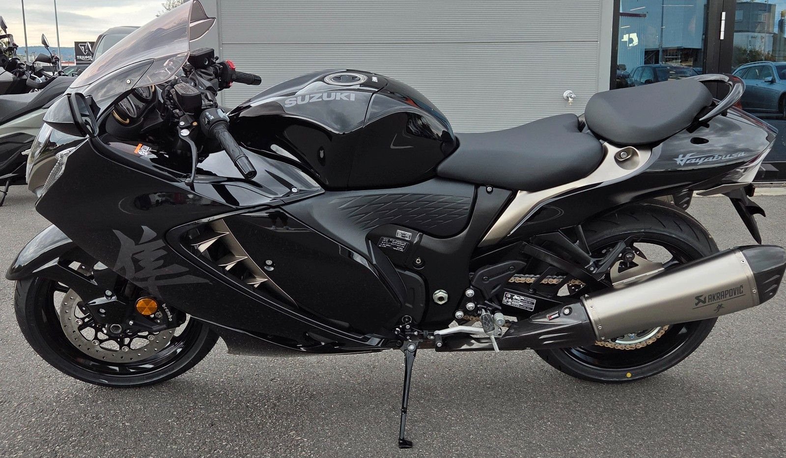 Ein Meisterwerk aus Kraft, Aerodynamik und purem Fahrspaß. In der Power Edition setzt die Hayabusa noch einen drauf: Der Akrapovic Slip-On Endschalldämpfer verleiht ihr einen tiefen, kraftvollen Sound, der Gänsehaut garantiert. Ein Klang, der die Straße vibrieren lässt und dein Herz schneller schlagen lässt.